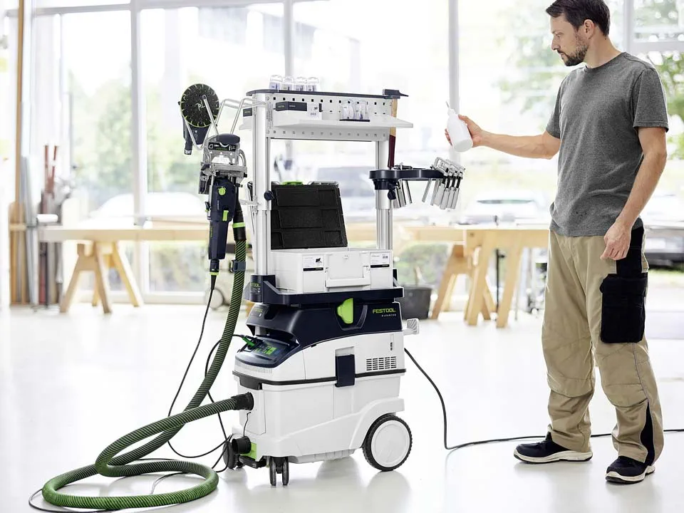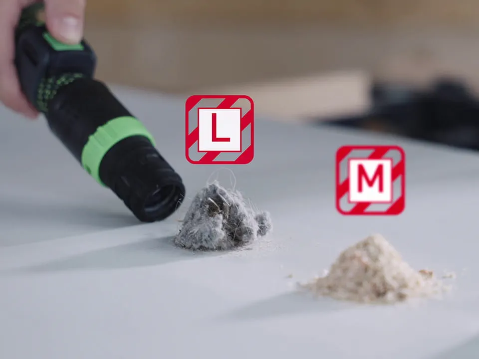Festool ви предлага различни индустриални прахоизсмуквания с различни класове на запрашеност, за да можете да използвате подходящото прахоизсмукване за всяка работа. А в комбинация с пречиствател на въздух можете да осигурите възможно най-доброто управление на праха - клиентите и здравето ви ще ви благодарят за това!